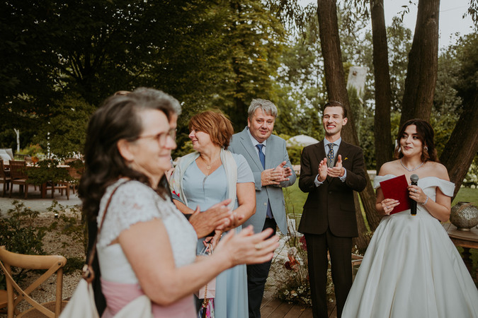 Każdy ślub międzykulturowy to dla nas nowe wyzwanie, które przyjmujemy z ekscytacją. Tak było i tym razem - polsko-portugalskie wesele Lucindy i Marcina. Ślub plenerowy w ogrodzie nie obył się bez niespodzianek... Lucinda skradła ceremonię wypowiadając przysięgę w języku polskim. Najpiękniejszą tradycją na ślubach zagranicznych, a czego często brakuje w naszej rodzimej tradycji są przemowy. Tak prosty gest, a może dać tak wiele cudownych emocji.