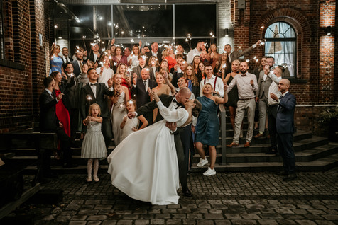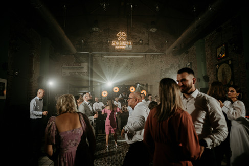 Po ceremonii przenieśliśmy się do industrialnej przestrzeni Szybu Bończyk, gdzie surowość i styl tworzyły niezapomnianą atmosferę. Metalowe konstrukcje, ceglane ściany i nowoczesne akcenty stanowiły tło dla tego niekonwencjonalnego wesela. To było jak połączenie surowego piękna z industrialnym vibe, które sprawiło, że każdy gość czuł się jak uczestnik wyjątkowego happeningu.